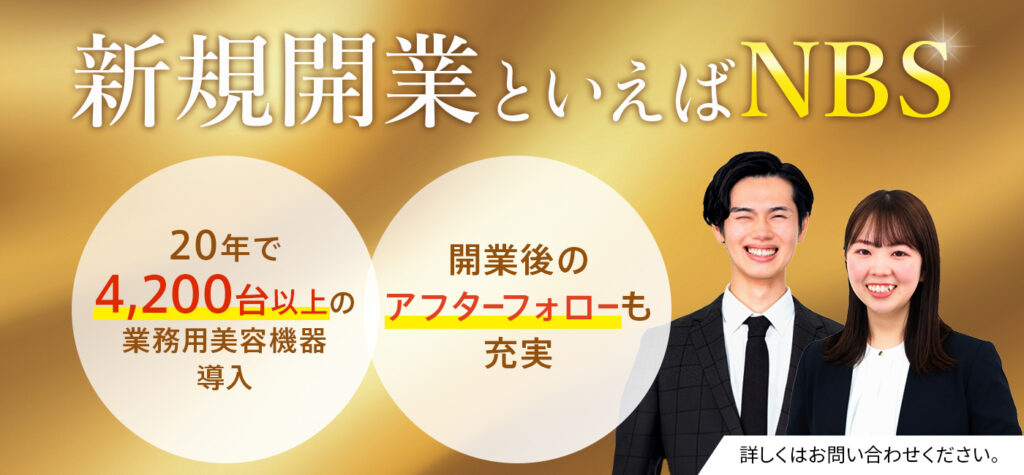 美容機器メーカー株式会社NBSは、20年で160,000台以上の美容機器導入実績!全国のサロンに自社開発の脱毛器などを導入しているので、高いお客様満足度と収益性を実現している業務用脱毛機のノウハウがあります。業務用脱毛機のことはお気軽にご相談ください。